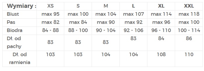 | Biust | max 95 | max 100 | max 104 | max 107 | max 114 | max 118 |