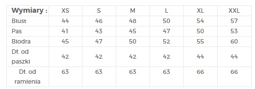 | Dł. od ramienia | 63 | 63 | 63 | 63 | 66 | 66 |