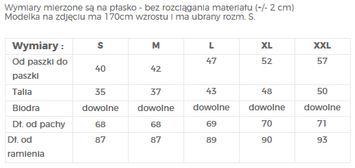 | Dł. od pachy | 68 | 68 | 69 | 70 | 71 |