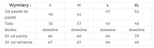 | Dł. od pachy | 68 | 68 | 69 | 70 |