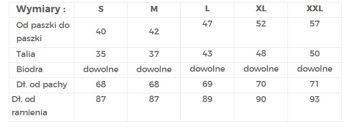 | Dł. od pachy | 68 | 68 | 69 | 70 | 71 |