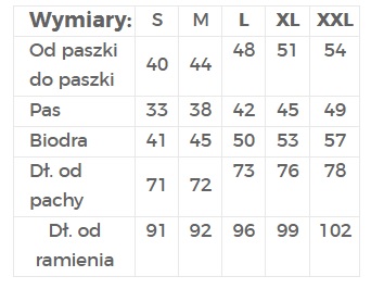 | Wymiary: | S | M | L | XL | XXL |