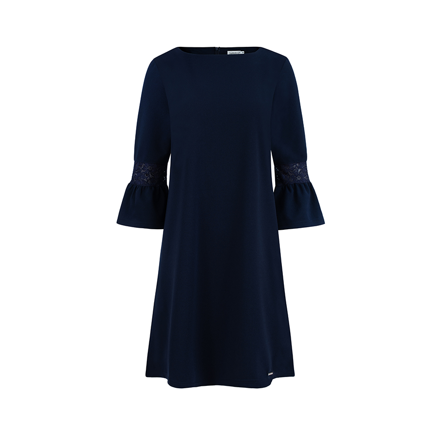 Prosta sukienka z rozkloszowanymi rękawkami i koronką – GRANATOWA