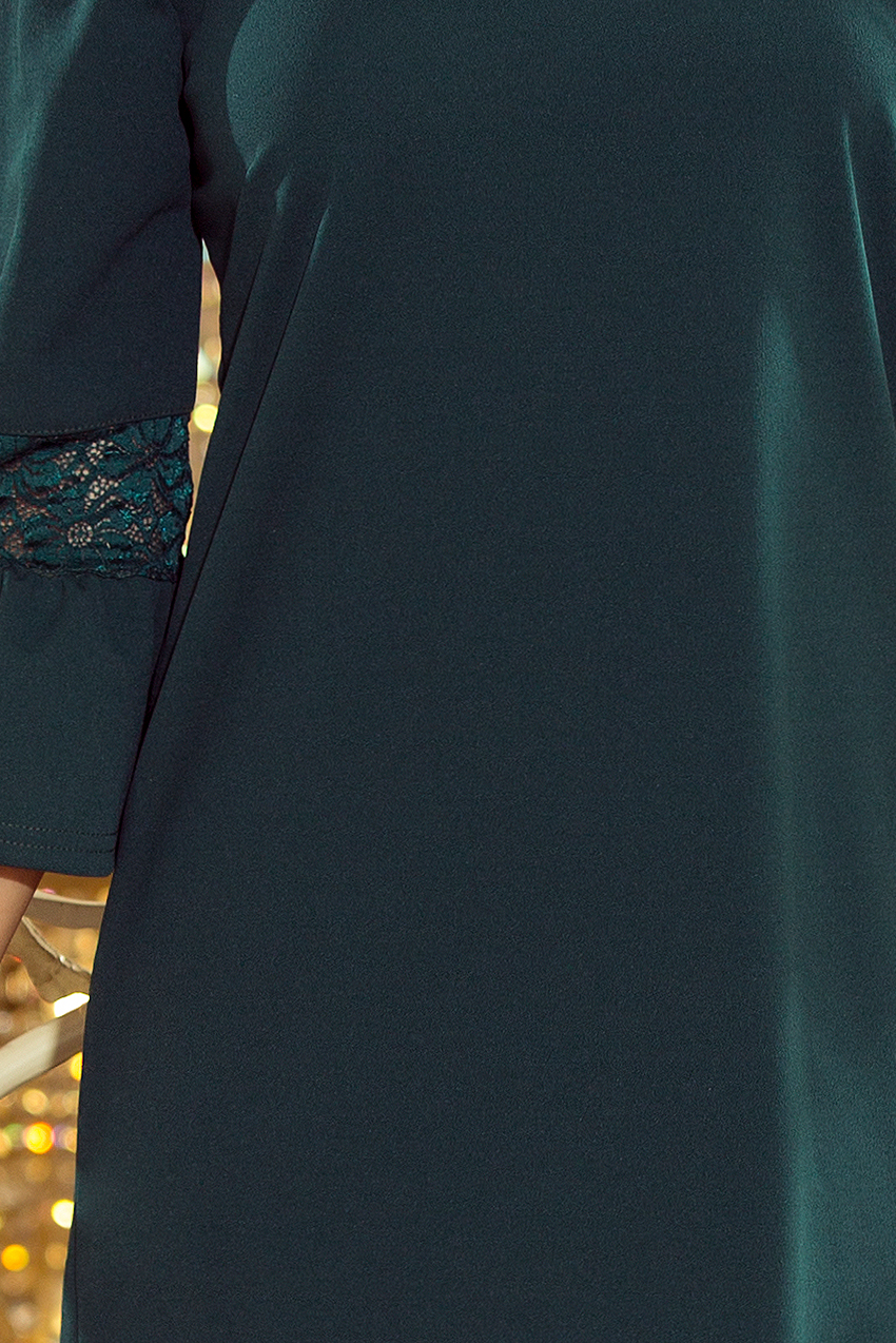 Prosta sukienka z rozkloszowanymi rękawkami i koronką – ZIELEŃ BUTELKOWA