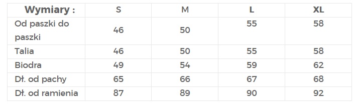 | Dł. od pachy | 65 | 66 | 67 | 68 |