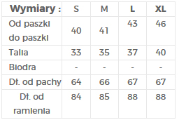 | Dł. od ramienia | 84 | 85 | 88 | 88 |