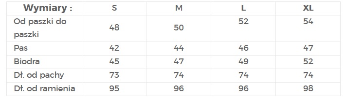 | Dł. od pachy | 72 | 73 | 74 | 74 | 74 | 74 |