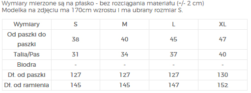 | Wymiary: | S | M | L | XL |