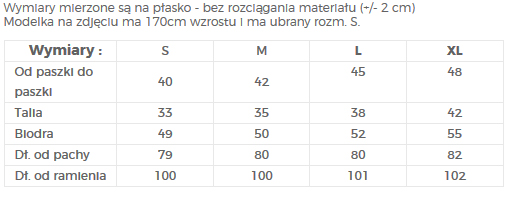 Modelka na zdjęciu ma 170cm wzrostu i ma ubrany rozm. S.