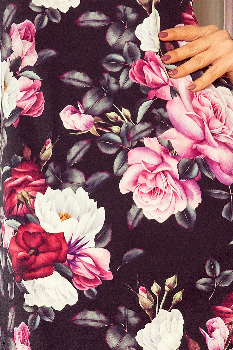 Trapezowa Sukienka Neva – czarna + kwiaty