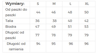 | Dł. od pachy (D) | 77 | 78 | 79 | 79 |