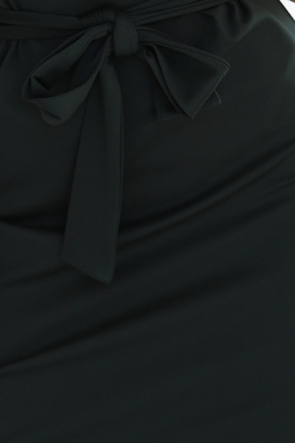 Elegancka sukienka z wiązaniem w pasie – ciemne khaki | Numoco