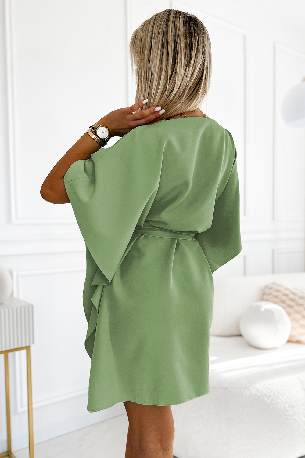 287-27 SOFIA Sukienka motyl z wiązaniem w pasie – OLIWKA