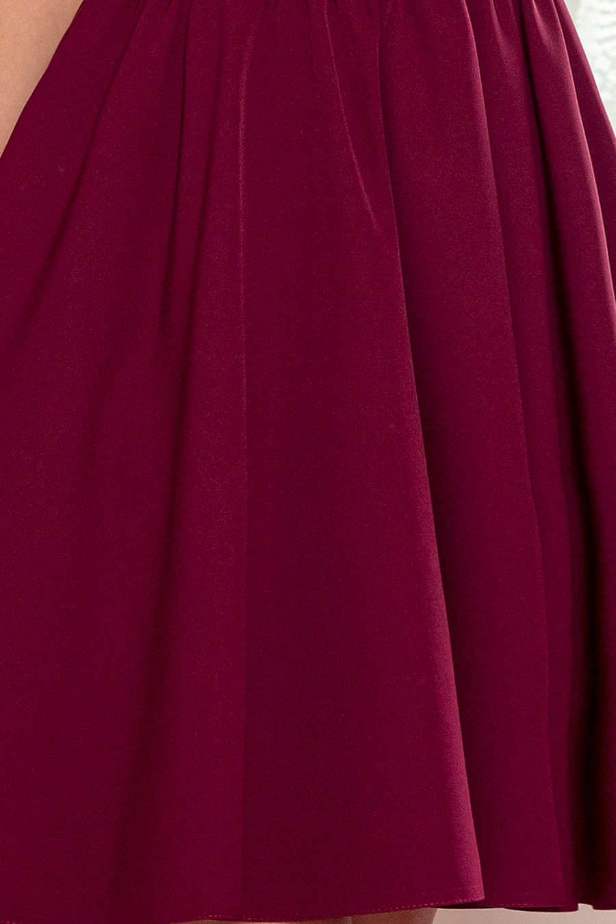 Rozkloszowana sukienka z falbankami na dekolcie – BORDOWA
