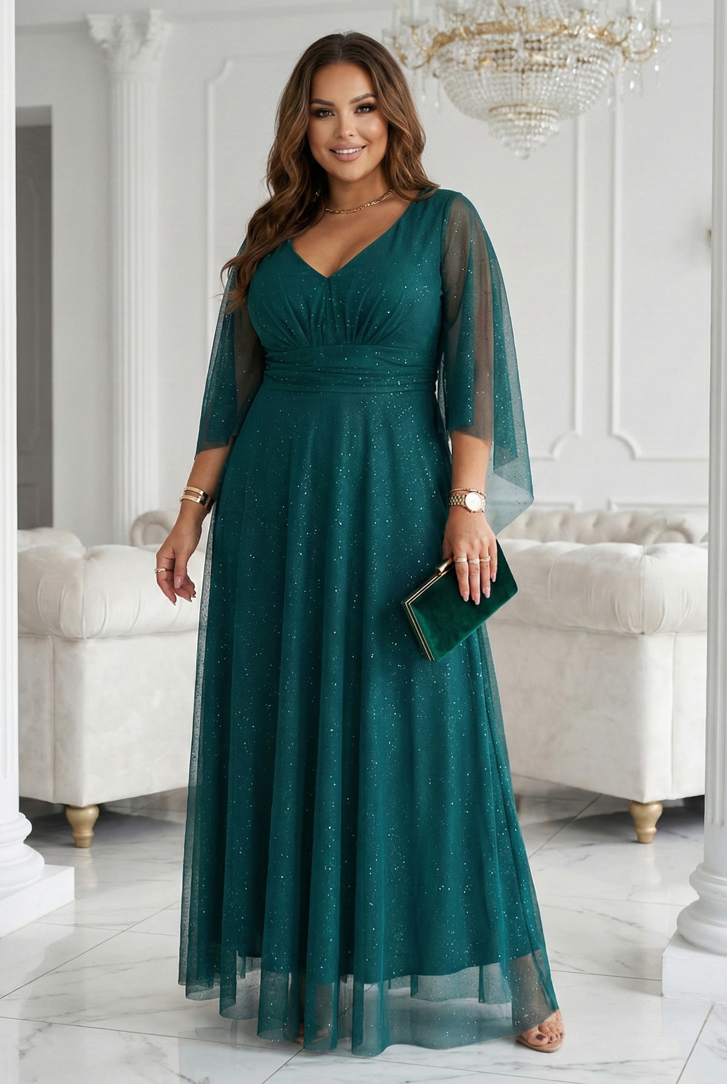 Co wyróżnia ten model? Połączenie klasycznej elegancji ze szmaragdowym odcieniem, który pasuje do większości typów urody i w naturalny sposób dodaje twarzy blasku. To sukienka, którą założysz nie raz – jest ponadczasowa, a jednocześnie na tyle nowoczesna, że przyciąga spojrzenia w każdym świetle.
