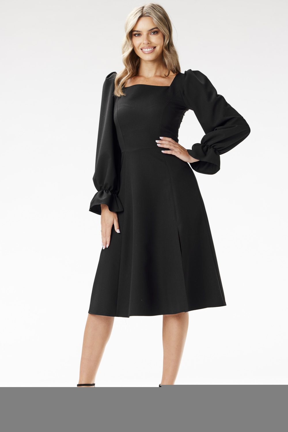 Elegancka sukienka midi z dekoltem w karo Szykowna sukienka midi z dekoltem w karo od polskiej marki Awama. Doskonała na eleganckie okazje, wyjścia czy święta. Dekolt w karo subtelnie eksponuje szyję i biust, dodając elegancji. Dół z klinów podkreśla sylwetkę, jednocześnie tuszując niedoskonałości. Długie rękawy sprawdzą się w chłodniejsze dni, dodając szyku. Zamek kryty zapewnia idealne dopasowanie. Idealna sukienka na wyjątkowe wyjścia i wieczorne okazje.